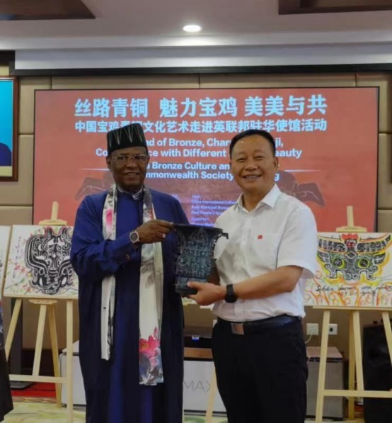 2021年6月11日,由中国国际文化交流中心、宝鸡市文化和旅游局、宝鸡市人民对外友好协会主办,陕西省妇女联合会支持,中国国际文化艺术有限公司、英联邦北京协会承办,陕西友联妇女儿童交流服务中心、宝鸡市人民政府驻北京联络处、宝鸡雪云文化产业发展有限公司共同协办的“丝路青铜·魅力宝鸡·美美与共”中国宝鸡青铜文化艺术走进尼日利亚联邦共和国驻华大使馆活动成功举办。