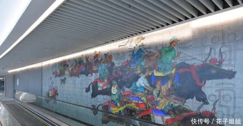 据悉,基于对功能空间的梳理和旅客动线的研究,机场将蜀风雅韵植入了航站楼整体设计。楼前景观绿地和T1航站楼迎宾厅,各有一处由国内著名艺术家创作的标志性雕塑作品;旅客候机区、到达廊、庭院、T1航站楼值机大厅的“天府巷”、VIP大厅通道等区域,散落着分别由中央美术学院、四川美术学院、中国美术学院等顶尖艺术院校及国内知名艺术机构、艺术家团队创作的各种公共艺术作品;成都博物馆、三星堆博物馆、四川博物院等7家川内知名博物馆也与天府机场合作,共同打造了航站楼文博空间,展示传播四川悠久的历史文化。